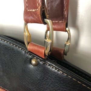 Flaws: the black does appear to be leather as well as the brown handles, while the brown accents on the bag appear to be faux leather. I cannot guarantee that this is accurate.