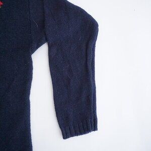 Vintage Erica G Navy Knit Embroidered Floral 45% Cotton Crewneck Sweater M