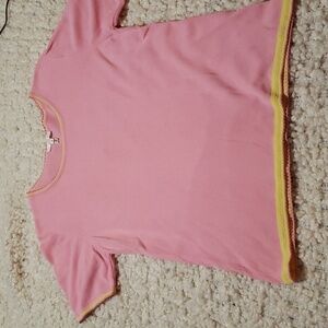 Vintage Escada women's pink and yellow trim tshirt m