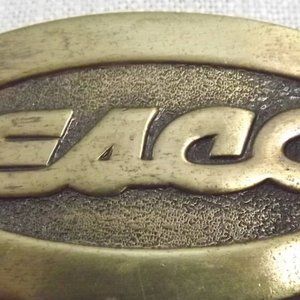 This solid brass oval belt buckle features the raised letters of ESCO.