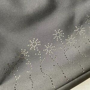 How precious! Amazing condition. 3 internal pockets and zipper closure. Features Acetate handles and a laser cut flower design.