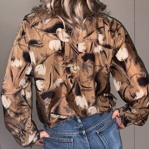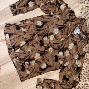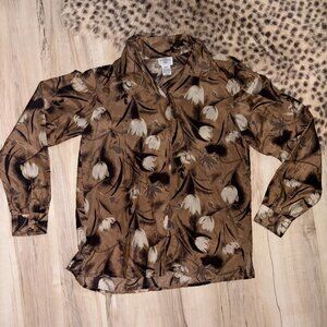 Vintage Essential Needs Silk Blouse with Tulips Sz M