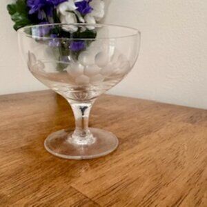 Vintage Etched Coupe Glasses with Grape Design – Elegant Stemware for Wine Cockt