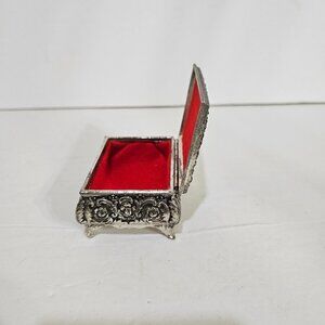vintage trinket box, etched silver tone, jewelry box, 4 legs, elegant design, collectible, home decor, great condition, storage, antique style