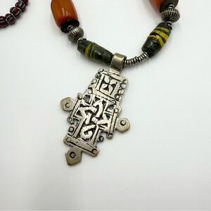Antique Ethiopian Coptic Cross Pendant Necklace