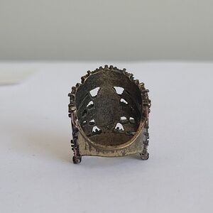 Vintage Art Deco Inspired Ethnic Tribal Aztec Native Distressed Black Red Enamel Boho Geometric Costume Chunky Full Finger Cocktail Statement Ring