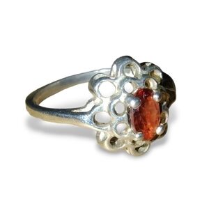 Red and white enamel insets with distessed darkened silver-toned metal, featuring geometric shapes and vibrant red accents.