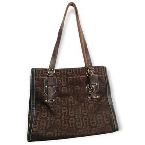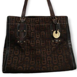 Vintage Etienne Aigner Leather Canvas Shoulder Tote Purse Handbag