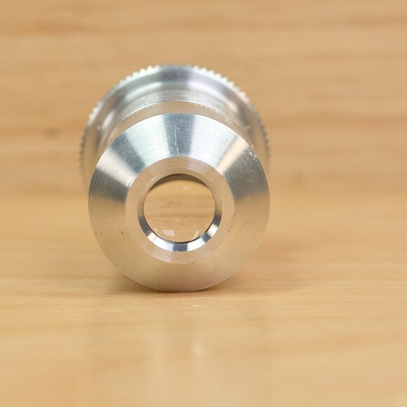Solid all-metal fixed lens, 49 mm long, 24 mm rear diameter.
