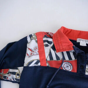 Vintage Euro Joy Navy & Red Nautical Button Collar with Draw String Sweater
