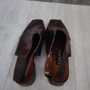 Vintage European 90's Brown Leather Simard Sling Back Open Toed Heels