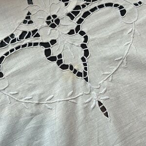 Vintage European Linen Embroidery Cutwork Table Cloth 93” x 126”