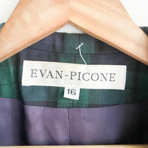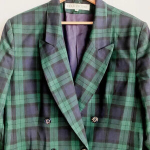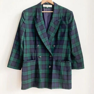 Vintage Evan Picone All Wool Black-watch Plaid Double Breasted Blazer 16