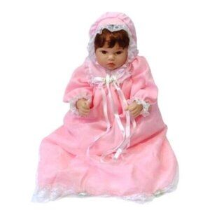Vintage Exclusive Collector's Doll Dressed in Pink with White Lace Trim & Bonnet
