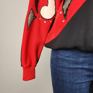 Vintage Extravaganza Red Cotton Floral Sweatshirt Size S