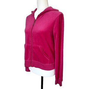 Vintage F & F Hot Pink Full Zip Velour Hoodie Womens Size Large Y2K Kangaroo