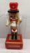 Elegant nutcracker with red and gold accents. Features detailed drumsticks and classic design.