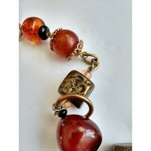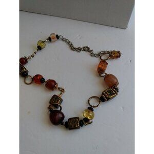 Vintage FAUX AMBER/GOLD TONE Cubes Statement Lampwork Necklace