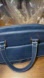 Navy Cinghiale leather Fendi bag with gold-tone hardware, dual flat top handles, contrast stitching, single exterior pocket, black woven lining, single zip pocket at interior wall and zip closure at top