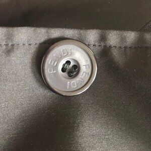 This vintage FENDI mid-length coat is in good pre-owned condition! No holes or stains. Second front button is missing. I cannot locate a material tag but most likely a blend of nylon and polyester. Never meant to be a belted coat.