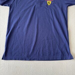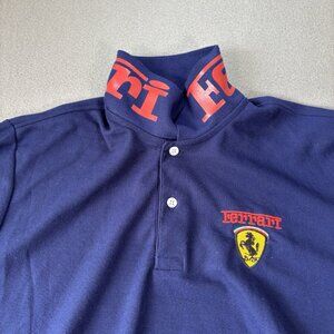 Vintage FERRARI Blue Polo Shirt Mens L Prancing Horse patches F-1 Chevron Shell
