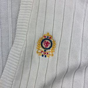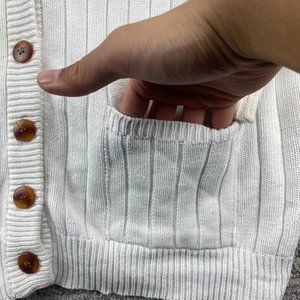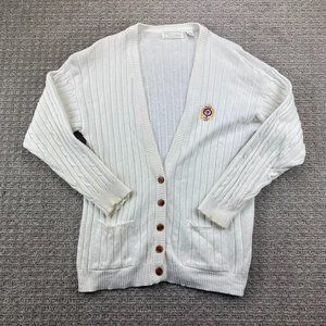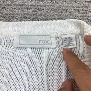 Vintage FOX Grandpa Sweater Knit Cardigan Men Medium M White Button Up Embroider