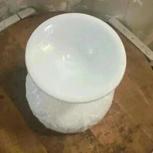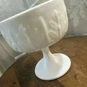 Vintage FTD 70s White Milk Glass 3D Oak Pattern Pedestal Bowl Vase Candy Dish