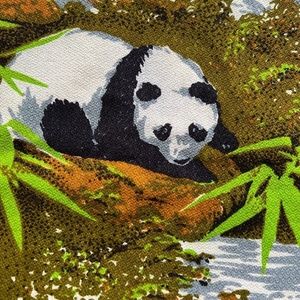 Vintage Fabric Barkcloth Panda Bear Print 1 1/2 yds x 54" Wide Westco Reltex ??