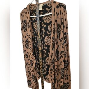 Vintage Faded Glory Fine Knit Cardigan Sweater In Brown Florals Matching BELT