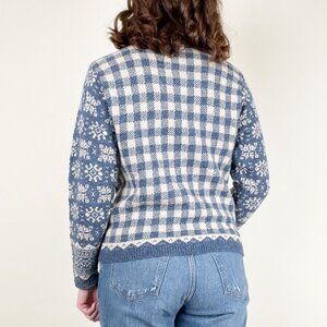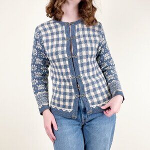 Vintage Fair Isle Scandinavian Plaid Knit Cardigan Sweater Christmas Winter Fall