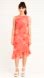 Y2K Fairweather dress featuring a vibrant cherry blossom floral print on a coral-pink base with a fluttery asymmetrical ruffle hem.