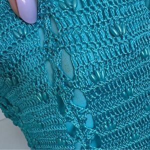 Vintage Fairycore Teal Crochet Swim Cover-Up knit mermaidcore XL