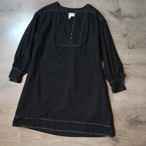 Vintage Fall wool collarless Goth Boho chic BLACK ALine BabyDoll Dress HOST PICK