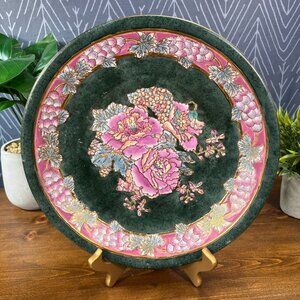 Vintage Famille Rose Style Plate Pink Peony & Grape Floral Charger for Wall