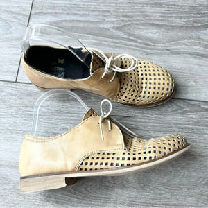 Vintage FarFalle Beige Perforated Leather Lace Up Oxford Made in Italy