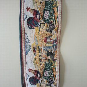Farmhouse style vintage table runner, woven jacquard fabric with Chicken Rooster Farmhouse design. Give a very warm cozy, rustic feel to the decor.