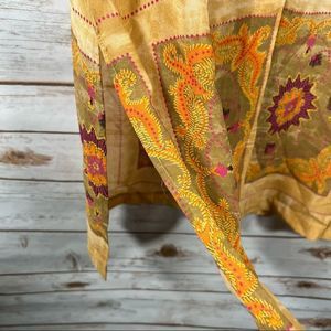Vintage Farouche Marbled Yellow Tunic w Print on Bottom Size 14 Made in Canada