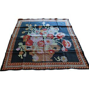 For your consideration is a beautiful vintage fashion scarf in black with a mosaic floral design.