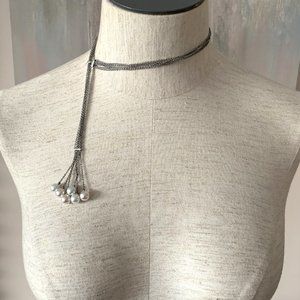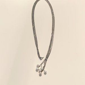 Vintage Fashion Statement Pearl Necklace, silver plated 6-layer chain, 6 pearls
