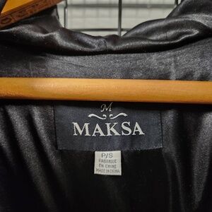 This plush acrylic coat with a black poly satin lining has a glamorous ribbed trim and generous hood.
