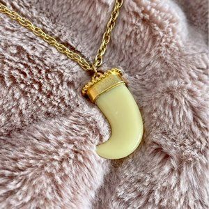 Vintage Faux Ivory Pendant with Long Gold Chain