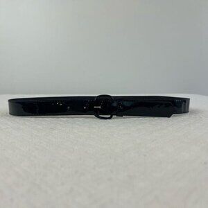 Vintage Faux Patent Leather Black Shiny Slim Waist Belt 80s Retro Whimsigoth