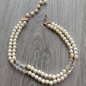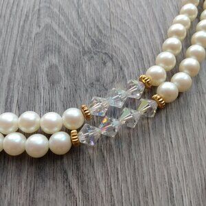 Vintage Faux Pearl Aurora Borealis Beaded Necklace Double Strands Formal