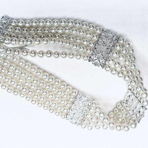 vintage choker, pearl choker, faux pearl necklace, multi strand necklace, statement choker, evening jewelry, bridal choker, elegant style, classic pearls, collectible jewelry, AllTreasures, gift for her
