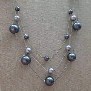 This classic, vintage Gray Faux Pearl Necklace and Rhinestone clip on earring set is timeless. The silver tone finish adds a touch of elegance to both pieces, making them a perfect match for a variety of occasions including anniversaries, birthdays, and holiday celebrations. Whether you're dressing up for a special event or adding a dash of vintage charm to your daily wear, this jewelry set is a versatile addition to any ensemble. There is a bit of tarnish on the backs of the clip on earrings, however the rest of the jewelry items are in terrific condition.