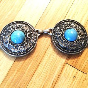 Vintage Faux Silver/Turquoise Adjustable Metal Belt