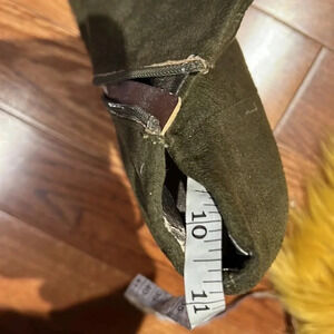 Vintage Faux Suede fashion olive green chunky heels boots Sz 9