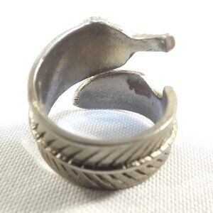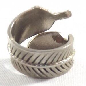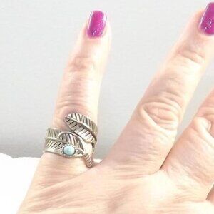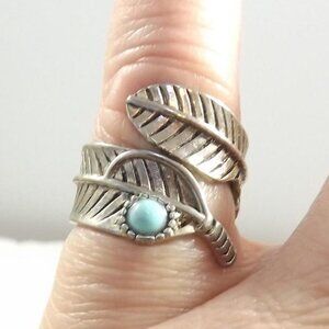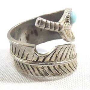 A gorgeous and eye-catching silver tone feather-shaped band with round turquoise stone!