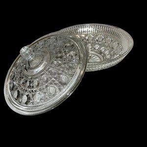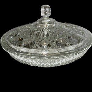 Vintage Federal Clear Glass Windsor Lidded Glass Dish Round