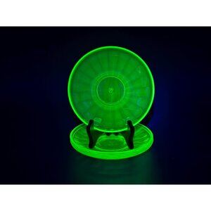 Vintage Federal Glass Hostess Green Depression Glass Teacup Saucers (Set of 3)